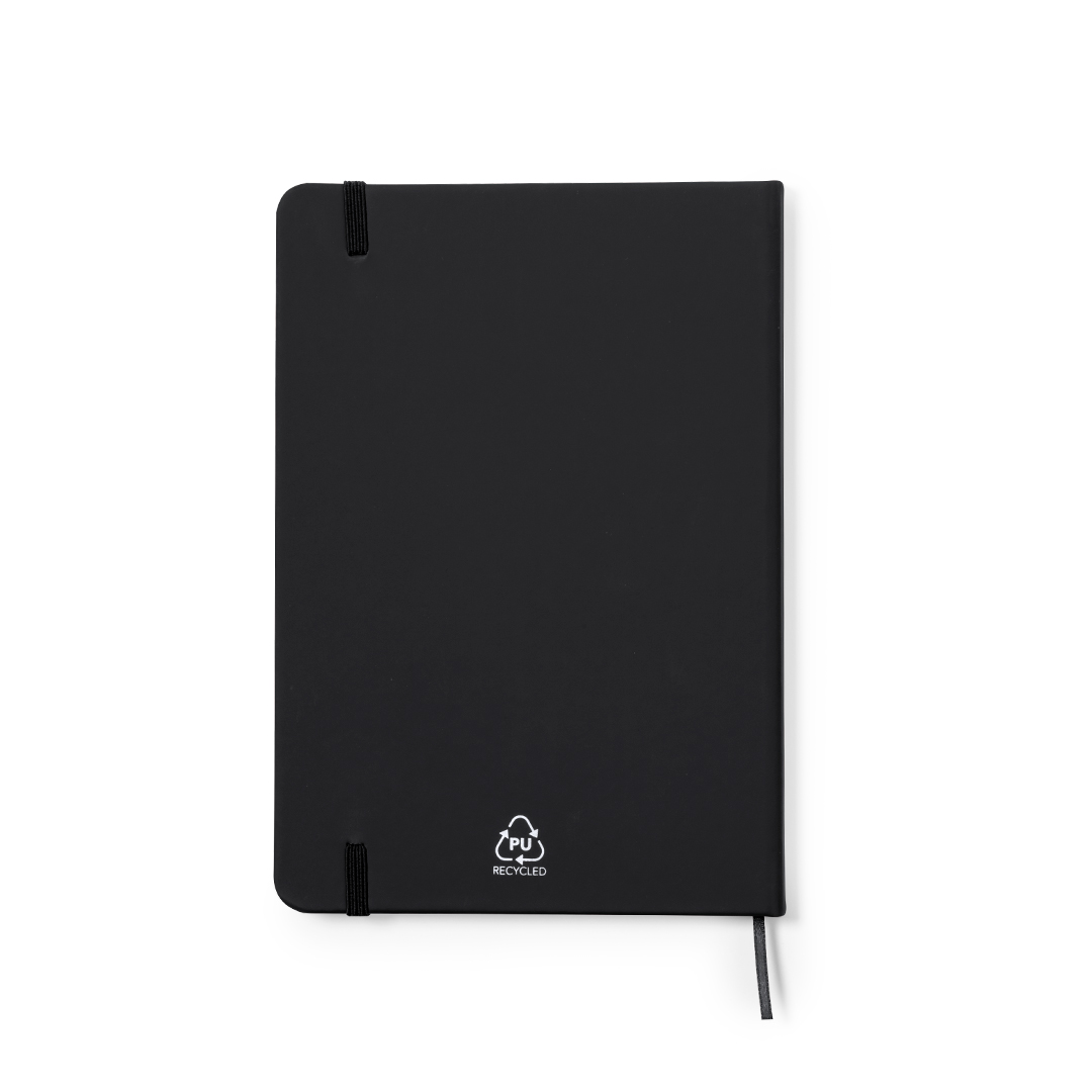 Bloc de notas con tapas rígidas fabricadas en polipiel reciclada . Interior con 100 hojas de disposición a una raya. Incluye elástico de cierre del mismo color. Con distintivo Polipiel Reciclada.